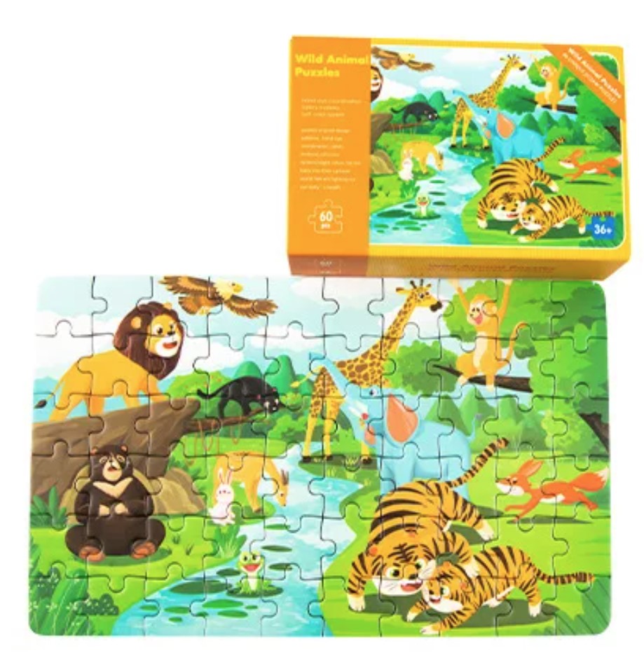 Packaged in a sturdy box, the 60-piece Wild Animal Puzzle is an excellent gift for birthdays, holidays, or as a surprise treat for any occasion. It's an entertaining and educational addition to any child's toy collection.