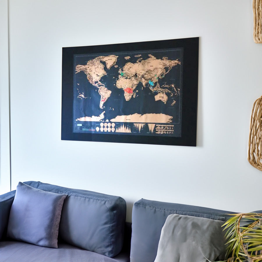 Our 30x40cm scratch-off world map blends chic design with a colourful, adventurous spirit to bring your travels to life on your walls!